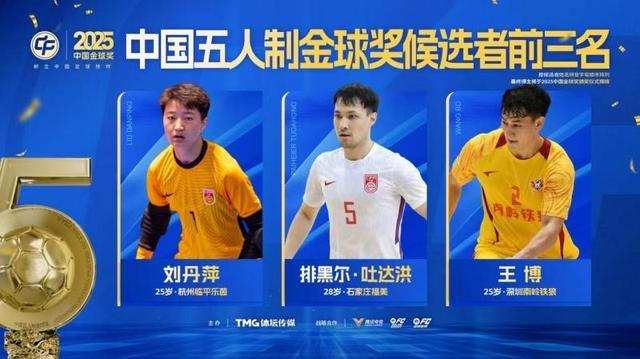 2025中国五人制金球奖前三名:刘丹萍、排黑尔·吐达洪、王博